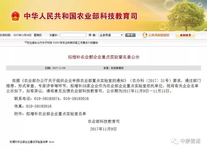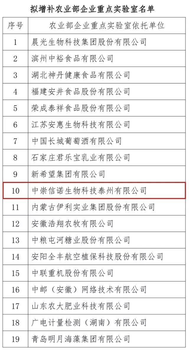 近日,從農業部網站獲悉,中崇信諾生物科技牽頭,聯合江蘇農牧科技職業學院申報的“農業部畜禽投入品安全評價重點實驗室”獲得農業部批準。